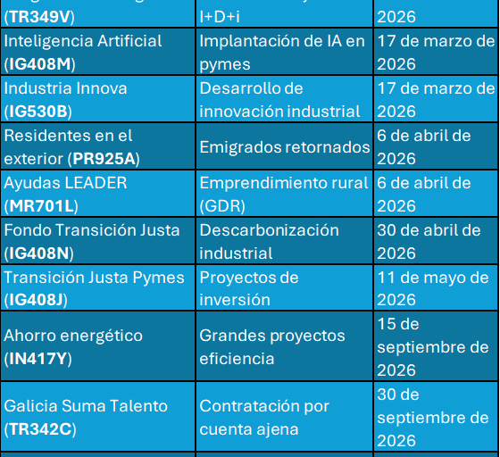 Descubre las Ayudas y Subvenciones para el Empleo y la Innovación en Galicia 2026: quién puede solicitarlas, importes y calendario oficial de plazos. Entra si quieres saber más.